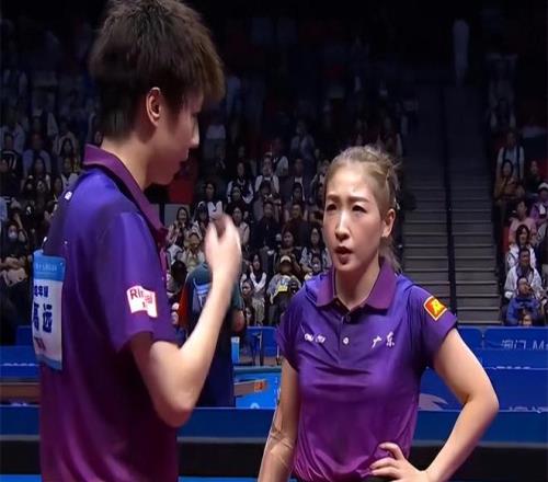第五局比赛,林高远和刘诗雯3比0领先,辽宁组合也连得3分追平比分。这时候广东队请求了暂停。但是,暂停回来还是辽宁组合取得6比4领先。诗与远方组合顽强追到6比6。