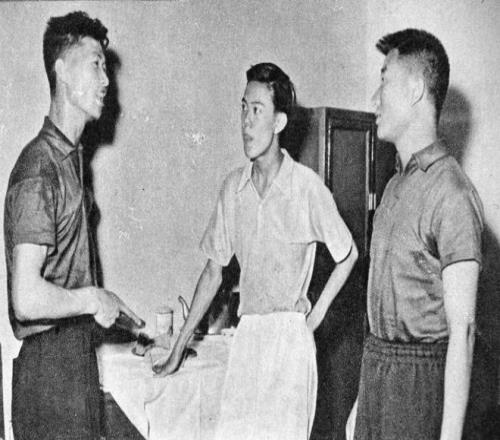 容国团(中)、傅其芳(右)