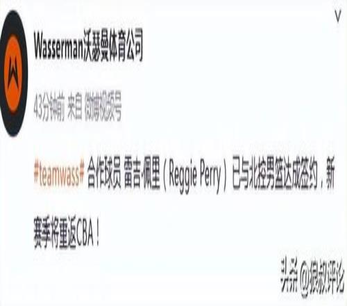 北京时间10月27日,根据“沃瑟曼体育”经纪公司发文公示:合作球员 雷吉·佩里已与北控男篮达成签约,新赛季将重返CBA!