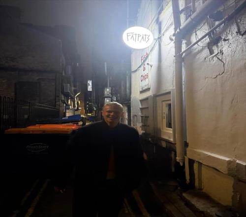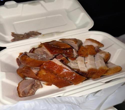 照片中可以看到,哈兰德点了一份烧鹅与叉烧的拼盘,哈兰德还站在这家中餐店门口拍了照片,背景上用中文写着“腊味饭外卖”。