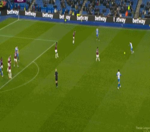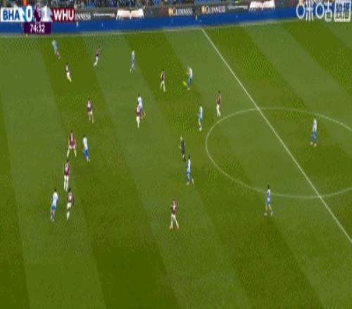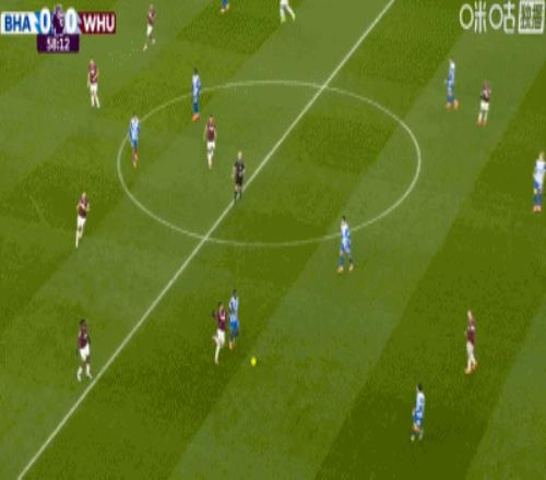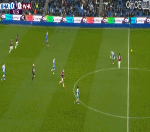 布莱顿11西汉姆,鲍恩小角度倒地破门,吕特扳平比分